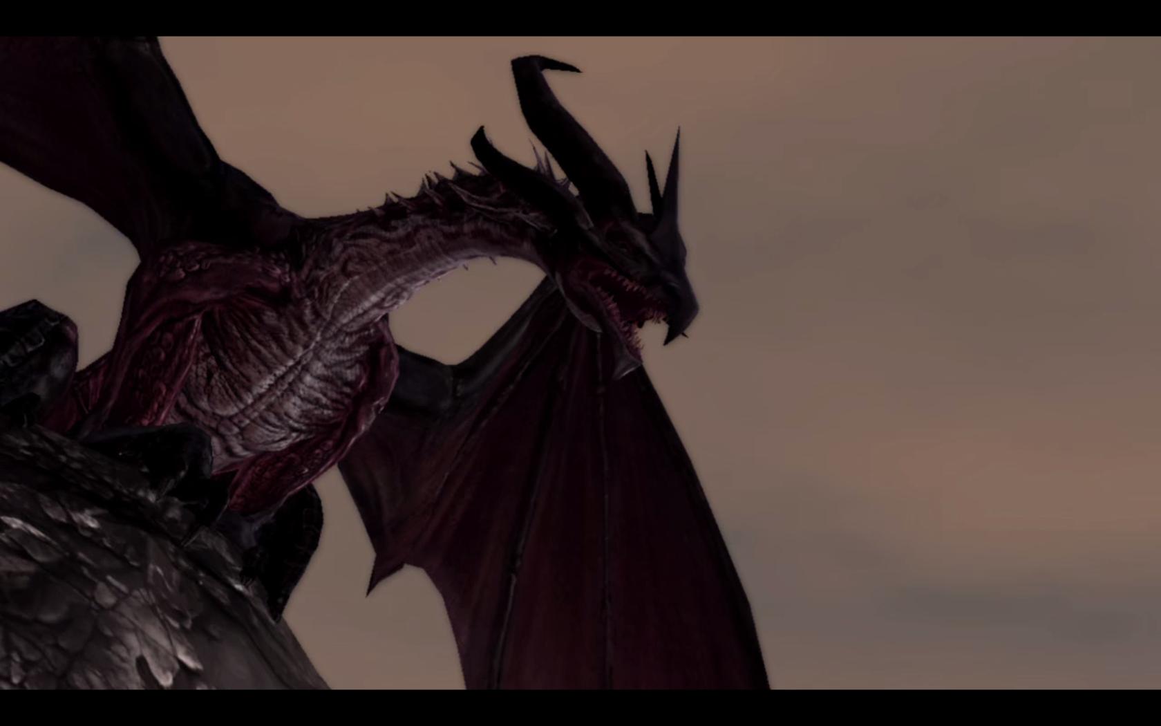 Then, a large roar…a troll appears at one of the entrances to the clearing and charges us both. We eventually take him down, once again with ease. Unfortunately we are now surrounded by darkspawn wondering what to do…in the background a large dragon opens her wings and swoops down towards us, fire pouring from her mouth…then it goes black.