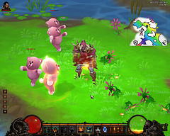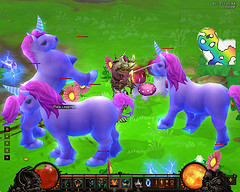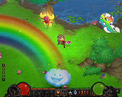 For all of you Diablo 2 fans who were curious as to whether or not there would be a hidden cow level in Diablo 3, I am sorry to tell you, there is no cow level. However, after spending countless hours farming four unique items and the plans for the Staff of Herding, you can find the Ghost of the Cow King. After a short conversation with the fallen Cow King, he will lead you to a place of magical rainbows and happiness. Enter Whimsyshire. The place where dreams come true.