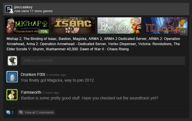 Taking a leaf from the Google+ and Facebook friend feeds Valve have created a more interactive feed which will allow you to rate and comment on nearly everything your friends post. You’ll now be able to save the best content to your favourites and rate your friend’s content to try and get it to the top of the Game Hubs.